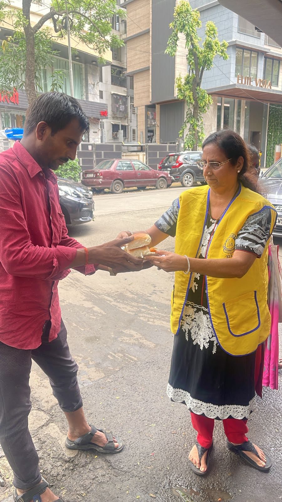 Lions President Jaya Jadhwani and Treasurer Kuresh Cementwala led a heartfelt food distribution drive for cancer patients and their relatives outside Wadia Hospital, Parel. Recognizing the challenges faced by families during medical treatments, the club reached out with nutritious meals and a message of care and solidarity.
