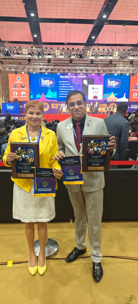 We also take great pride in congratulating: IPDG Saraswati Sankar and Sunil Lavti, LCIF Coordinator (2024–25) on receiving LCIF Awards for their exemplary leadership and dedicated service during Lions Year 2024–2025. PDG K. L. Parmar on being honoured with the LCIF Recognition Award.