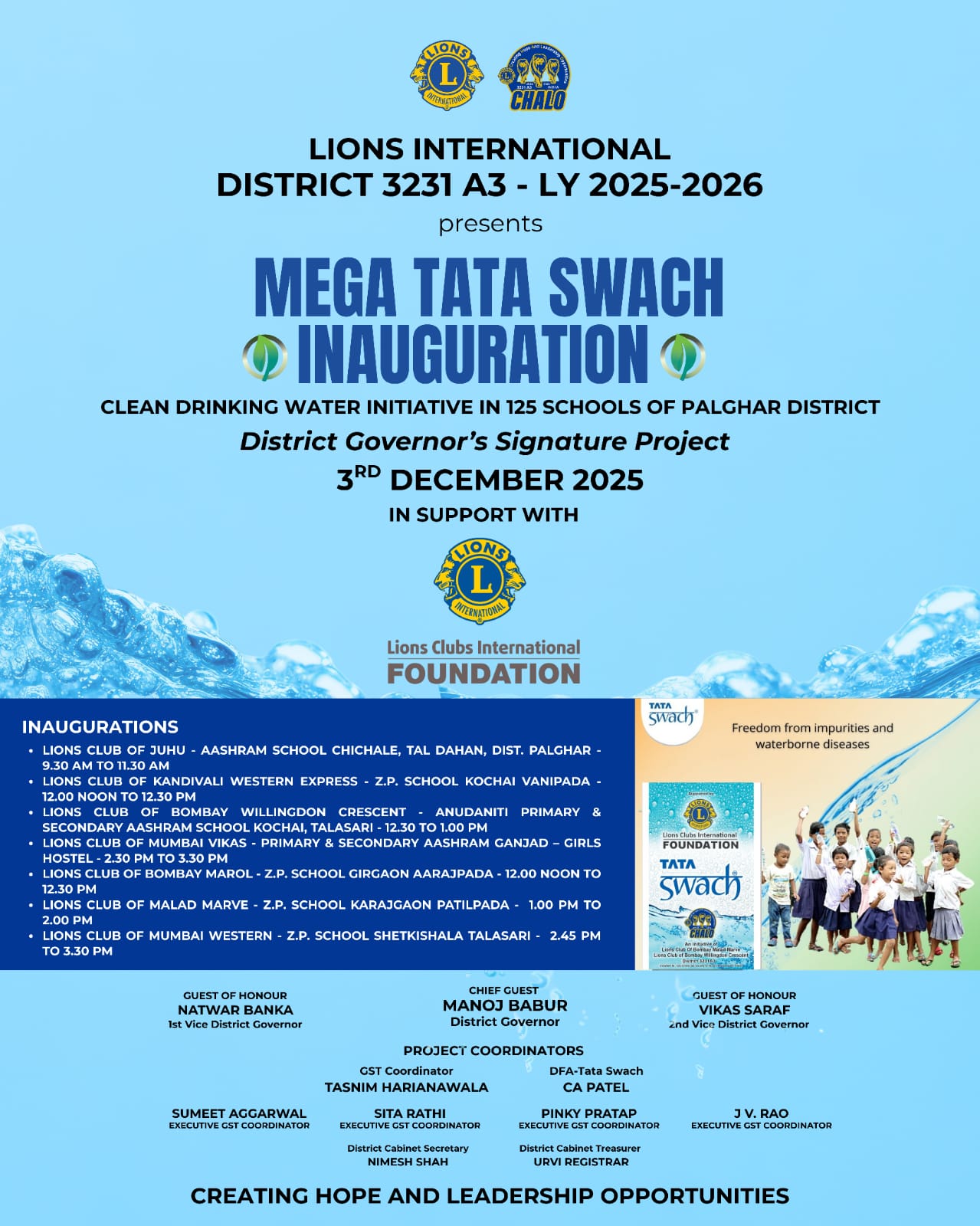 On 3rd December 2025, we begin this historic journey by inaugurating the first 7 Tata Swach units.