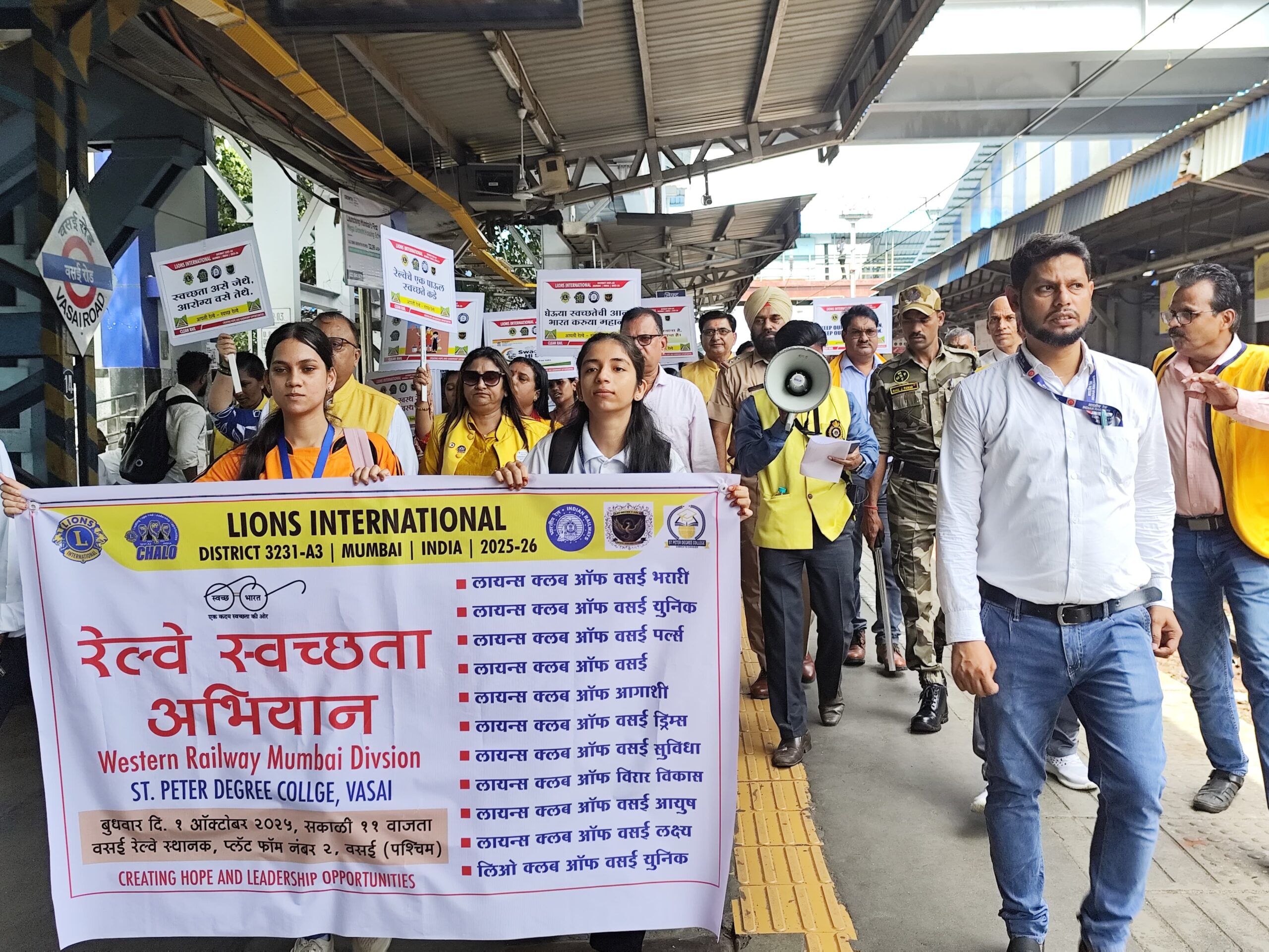 A Cleanliness Drive and Awareness Rally was successfully conducted at Vasai Railway Station as part of the Swachh Bharat Abhiyan. The event was efficiently coordinated by Ln. Rajesh Agarwal, Ln. Deepak Badgujar, and Ln. Shraddha More, spreading awareness about safety at Rly stn and environmental responsibility.