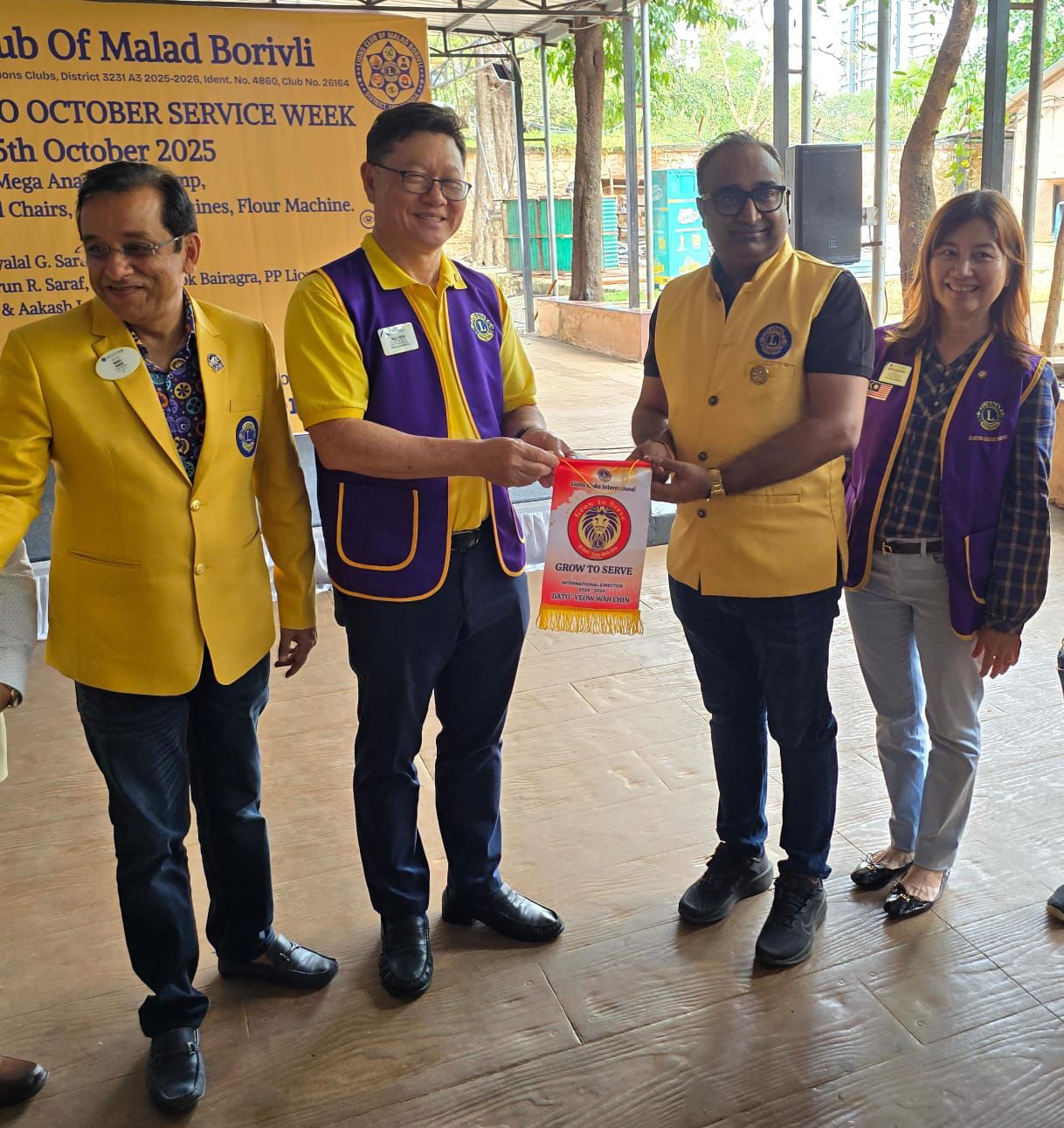Appreciation Award Grow to Serve given by international Director Lion Dato Yeow Wah Chin – 2024-26 (From Malaysia ) & his wife, Dist. Governer Lion Manoj Babur, 1st & 2nd VDG & Dist. Cabinet Team to – Lion Amit Gupta- President & his Team of Lions Club of Malad Borivli for Service Projects during OSW.