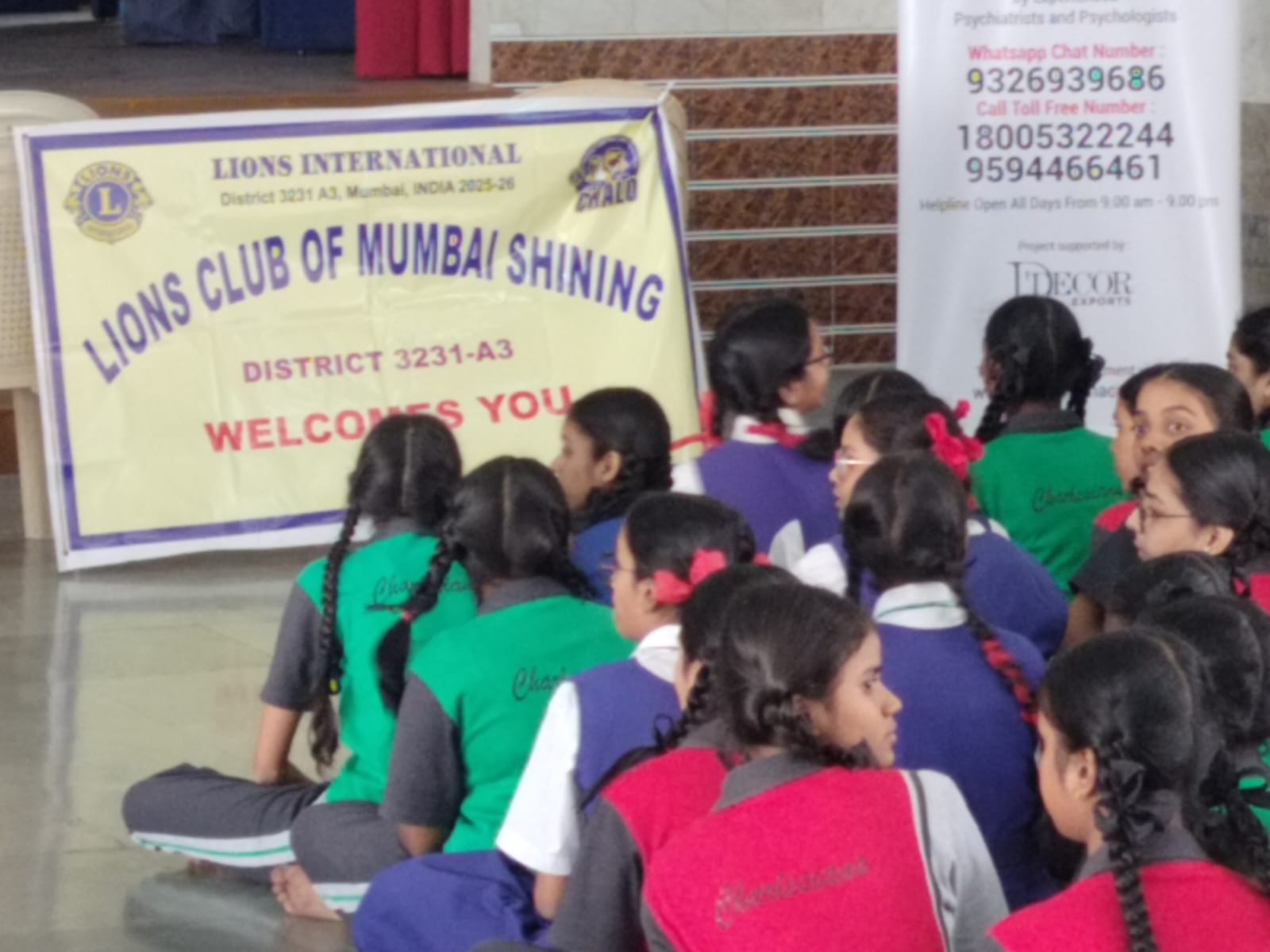 Mental health workshop by Lions club of Mumbai Shining at st Charles school vakola Santacruz East on 15th October, workshop very successfully conducted by the trainers sent by Ln Aarti,more than 500 Students attended this workshop
