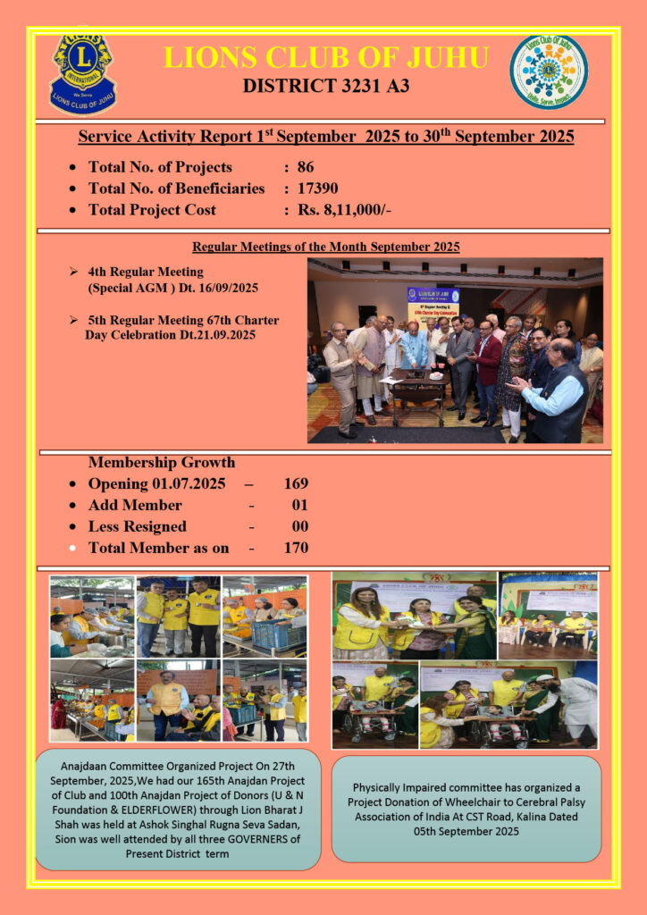 Lions Club of Mumbai Vikas is regularly serving ready meal to local community.. Vada Pav on 2nd September, Hot Khichdi on 11th, 18th & 25th September.