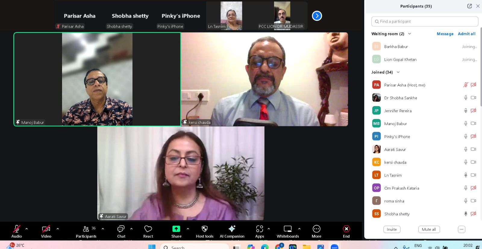 60 lion members attended this special webinar on zoom as well as live streaming on Lions Club of Bombay Vijaynagar.